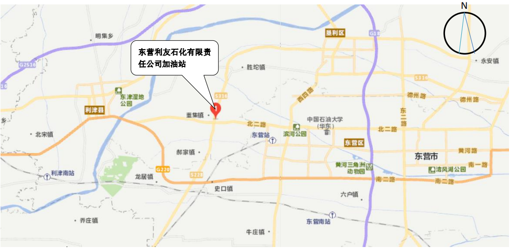 東營利友石化有限責任公司加油站位于董集鄉政府南富園路(東利路)與董勝路(S316)交匯處。該加油站東側為民用建筑;西側為廢棄儲物間與瀝青罐(罐已停用);該加油站距離南側富園路(東利路)約15m,路對面為空地,站區與富園路之間設有一根架空通信線;站區西北側設有6個地上儲罐,現今已廢棄。站區北為一條鄉村道路,路北側為民房建筑。 |